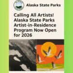 Applications are now being accepted through October 31, 2025. In exchange for the residency, chosen artists will donate one original piece of their work to Alaska State Parks and host a public outreach activity such as a workshop, demonstration, or talk to engage local communities.