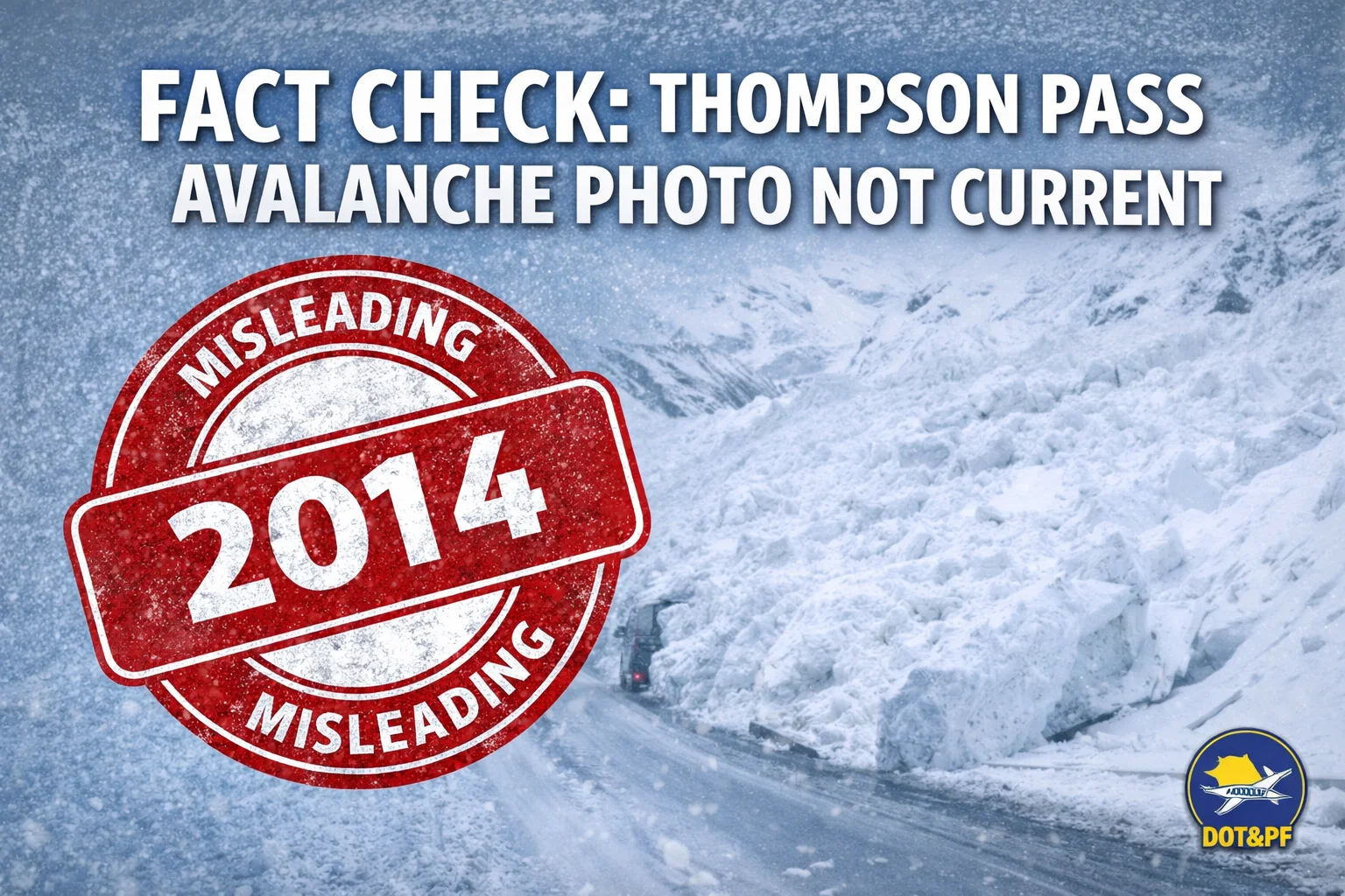 State transportation officials have confirmed that a photo circulating online showing a large avalanche blocking the Richardson Highway near Thompson Pass is not current.