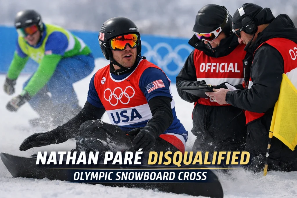 Paré, who earned acclaim for advancing through the early rounds at the Winter Olympics, was competing among the world’s top snowboard cross athletes when officials ruled that he violated a racing rule during Wednesday’s quarterfinal heat. The disqualification came after video review and consultation by the race jury.