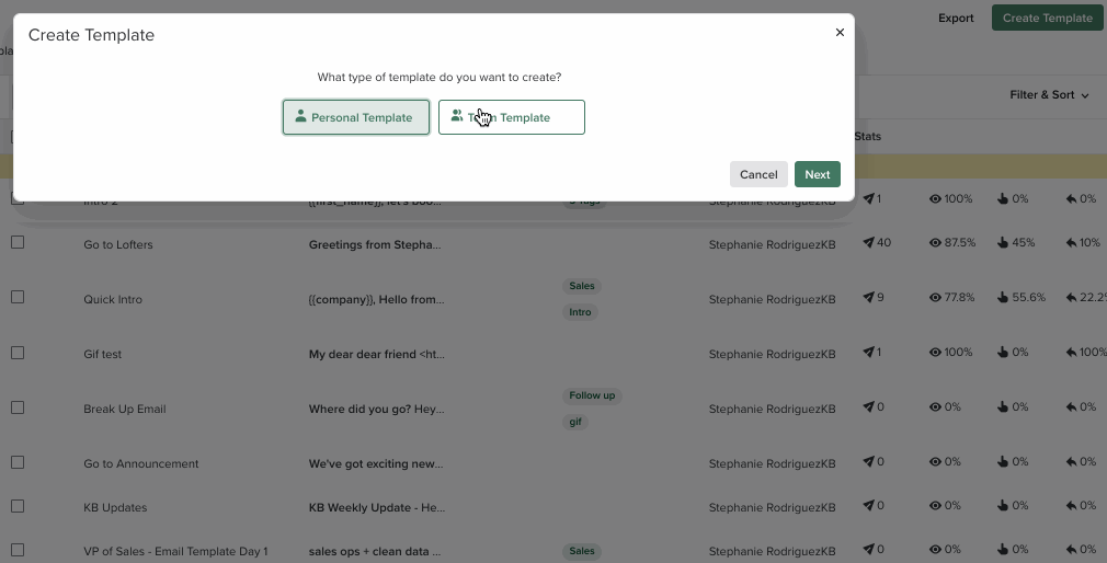 Creating one is straightforward. Go to Templates in the menu, hit Create Template, write the message, drop in personalization fields, and save it with a name that makes it easy to find later.