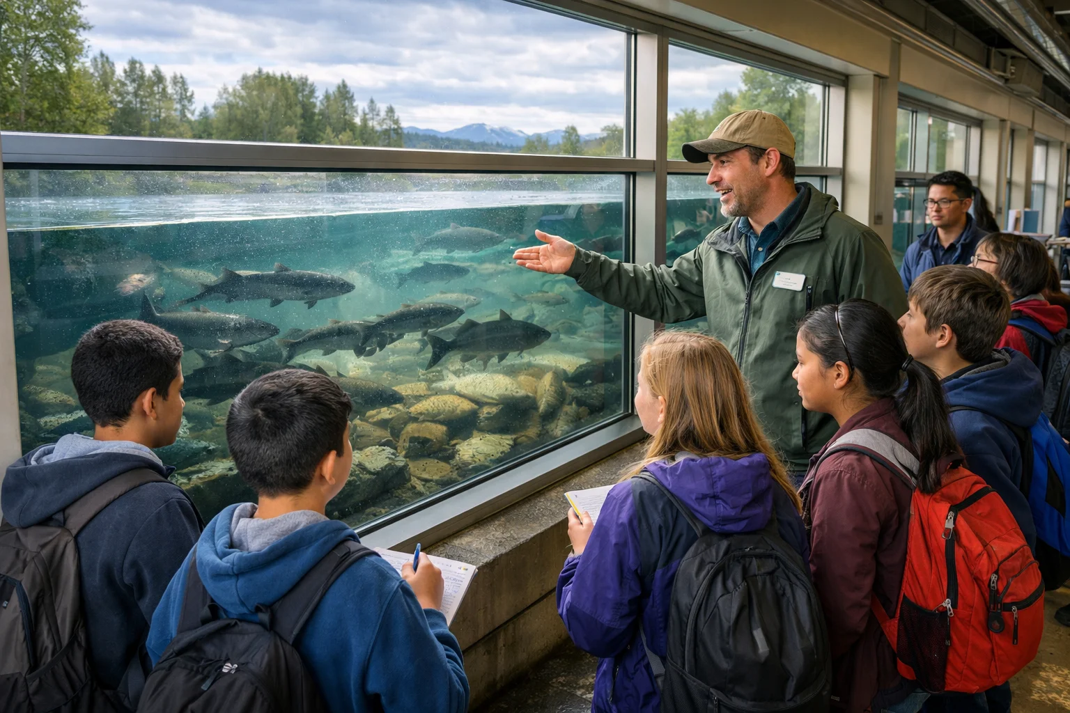 The facility welcomes school groups and offers self-guided audio tours, educational exhibits, and videos that explain Alaska’s fisheries and hatchery operations. Guided tours are also available when booked in advance, giving students a closer look at fish conservation and habitat management.