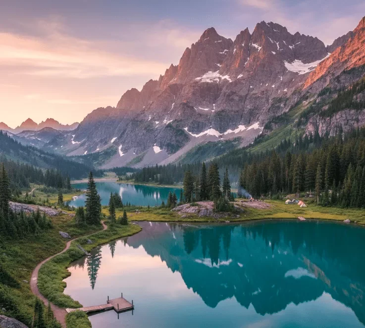 Summit Lake is simple, scenic, and quiet. You don’t have to hike miles to reach it, and you don’t fight crowds to enjoy it. The clear water picks up the surrounding mountain glow, especially during sunrise and early evening, the kind of light that makes even quick photos look unreal.